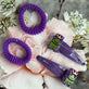 Fint set i lila med tjocka elastiska band och spännen med grodor