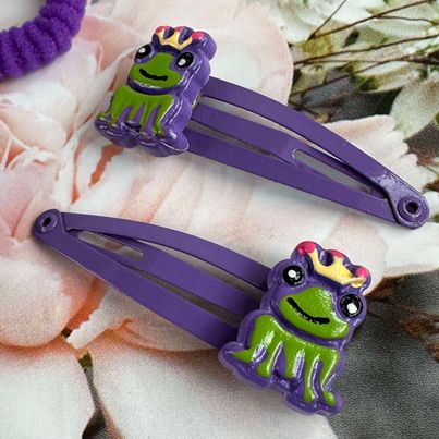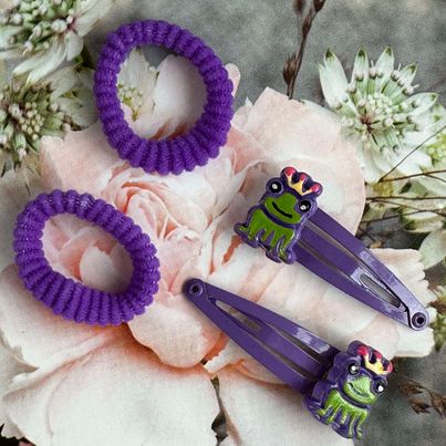 Detta fina set i lila kommer med tjocka elastiska band och charmiga spännen med grodor, vilket gör det både praktiskt och roligt för barn att använda. De tjocka elastiska banden ger ett säkert grepp om håret, medan de lekfulla grodspännena tillför en extra touch av personlighet och glädje till varje frisyr.