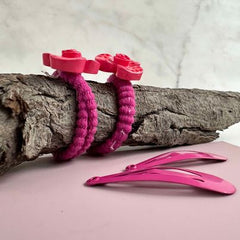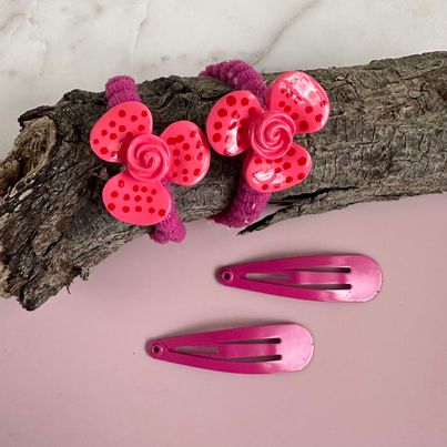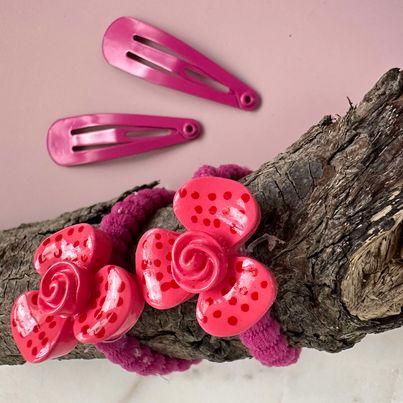 Detta set med håraccessoarer i rosa nyanser med blommor erbjuder en charmig och lekfull touch till barnens frisyrer. Blommorna ger en extra detalj som gör att håret ser mer livfullt och glatt ut. De mjuka rosa tonerna är tilltalande för barn och kan enkelt matchas med olika kläder, vilket gör dem mångsidiga för både vardag och speciella tillfällen.