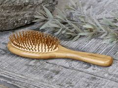 En hårborste tillverkad i bambu, ett naturligt och hållbart material. Denna bambuborste är inte bara skonsam mot ditt hår, utan också mot miljön. Med sin stilrena design och praktiska storlek blir den ett självklart val för alla som värdesätter kvalitet och hållbarhet.