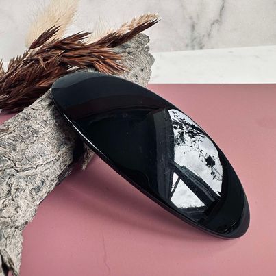 Hårklämman är tillverkad av en kombination av plast och metall, vilket ger en robust och hållbar konstruktion. Plastdelen gör klämman lätt och bekväm att bära, medan metallen ger extra styrka och hållbarhet. Denna kombination säkerställer att klämman håller håret säkert på plats utan att glida, samtidigt som den är skonsam mot håret.