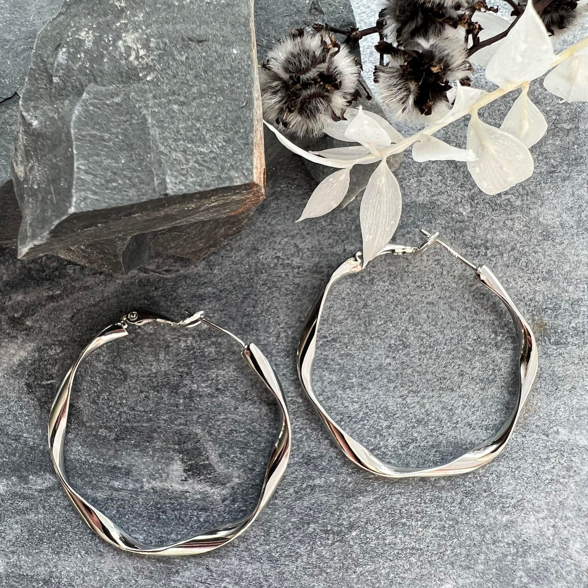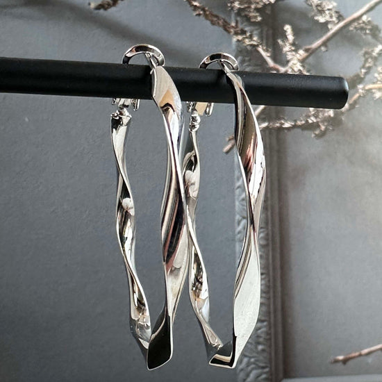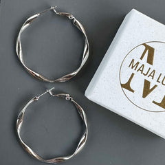Njut av subtil elegans med Hopp Twisted Silverbelagda Örhängen. Dessa raffinerade örhängen erbjuder en harmonisk balans mellan trendig stil och tidlös skönhet, och ger en anmärkningsvärd touch till alla dina outfits. En kvalitetsinvestering för ditt smyckeskrin.
