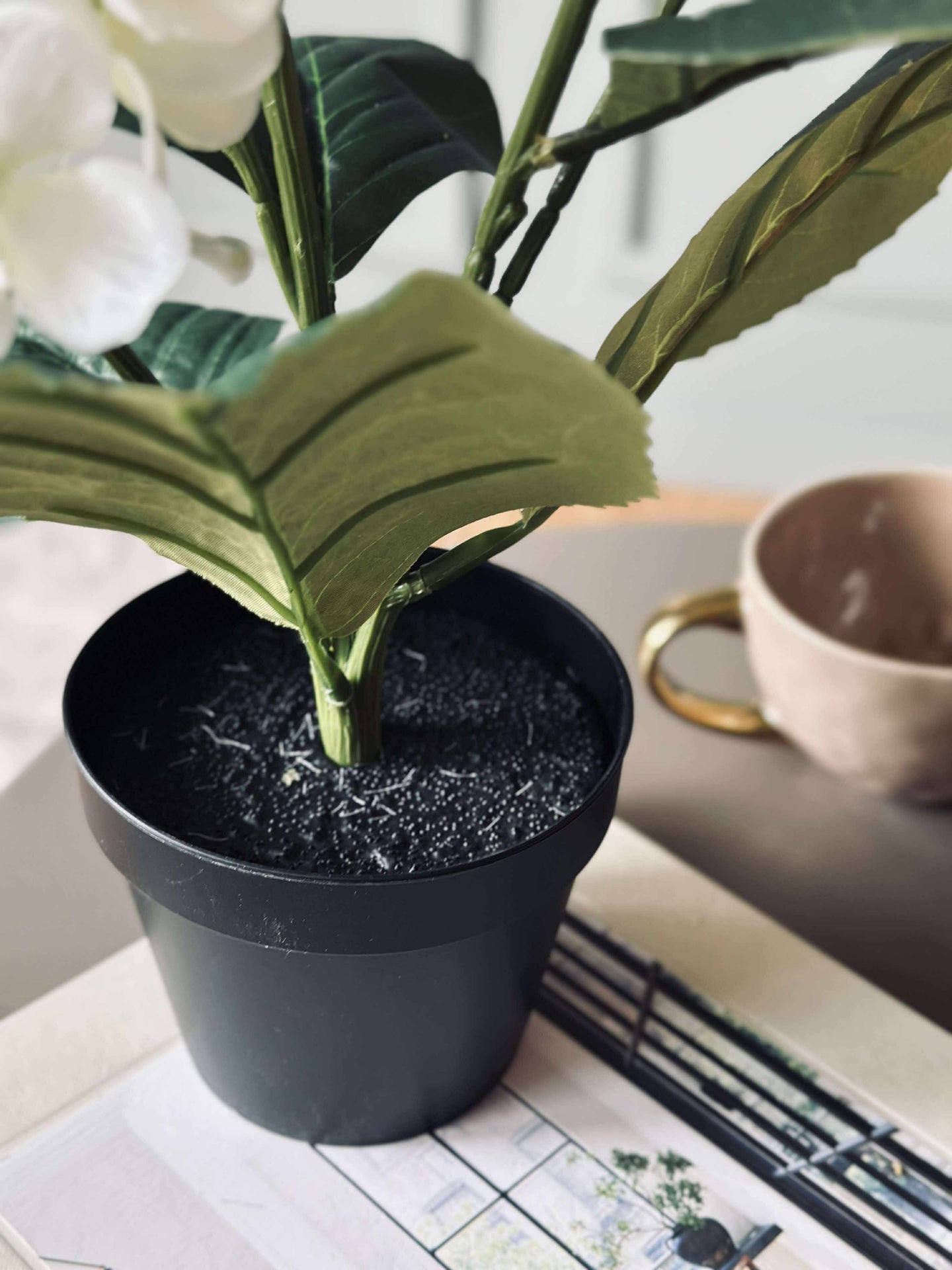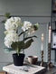 Den vita hortensian levereras i en kruka, vilket gör den lätt att placera och flytta runt i hemmet. Krukan säkerställer att växten får rätt stöd och näring, vilket främjar en långvarig blomning. Med en kruka blir det enkelt att integrera hortensian i olika rum, och den kan snabbt bli en del av hemmets atmosfär och stil.