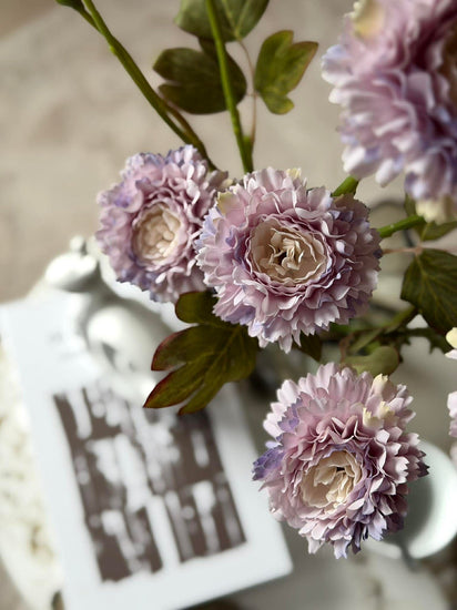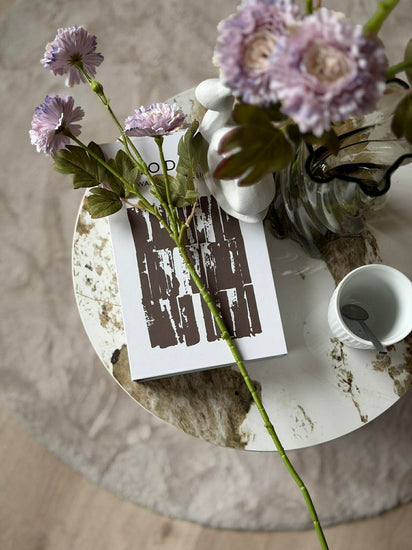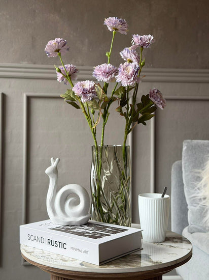 Stjälken kan också användas ensam som en diskret färgdetalj i en vas, där den lila nyansen ger ett mjukt och stämningsfullt uttryck.