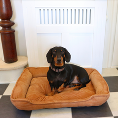 Hundkorgen i äkta sammet erbjuder en mjuk och inbjudande yta för ditt husdjur. Samtets naturliga textur bidrar till en varm känsla och skapar en trivsam plats för vila. Dessutom är materialet slitstarkt och lätt att rengöra, vilket gör det praktiskt för dagligt bruk. Den tidlösa stilen i sammet kompletterar olika inredningar och ger en stilren touch till ditt hem.
