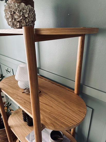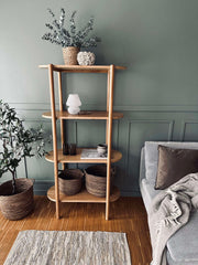 Den massiva ekkonstruktionen ger hyllan en robust och hållbar kvalitet som står emot tidens tand. Ekens naturliga styrka och motståndskraft mot slitage gör att hyllan kan bära tunga böcker och föremål utan att böjas eller skadas. Dessutom bidrar ekens varma och naturliga utseende till en tidlös och stilren inredning som passar i de flesta hem.