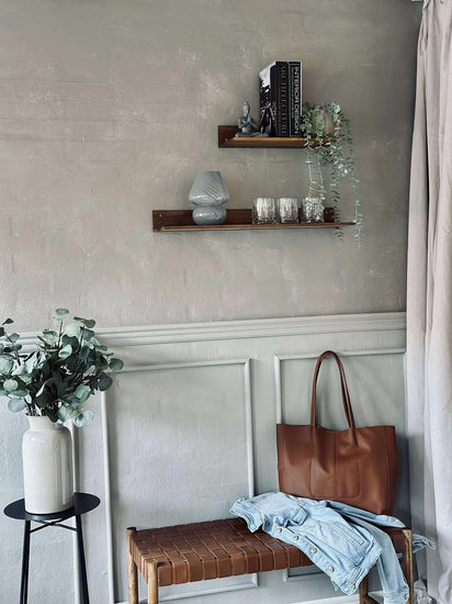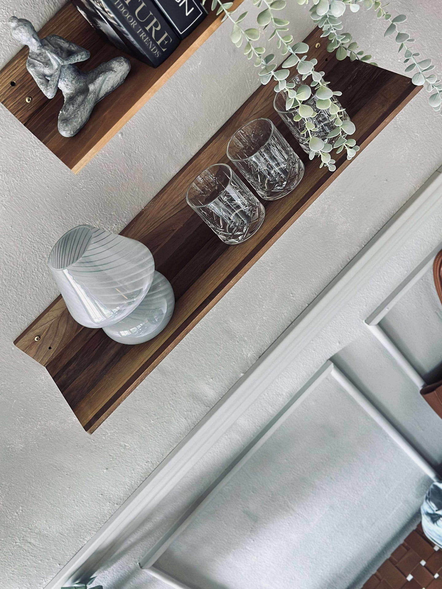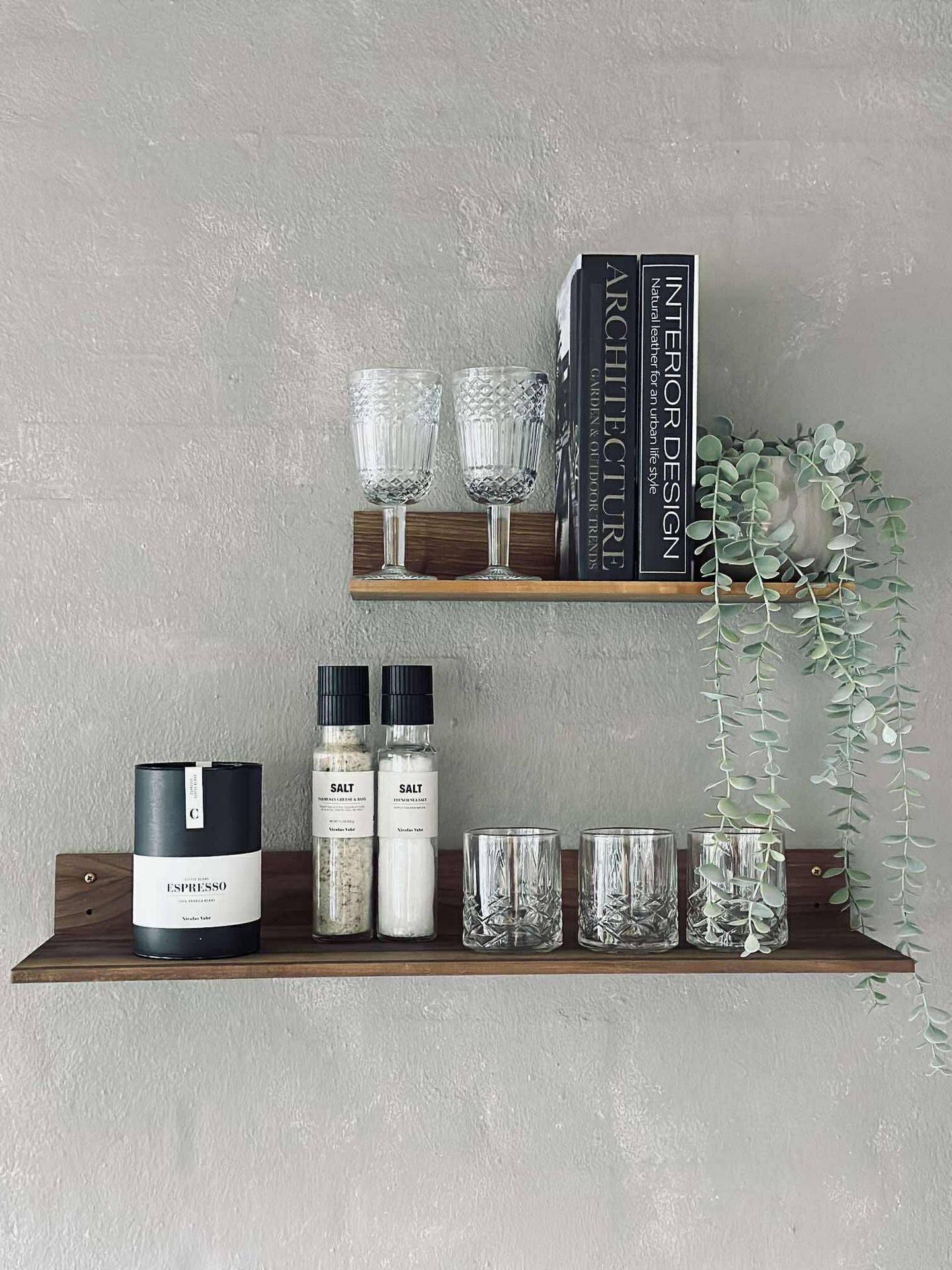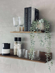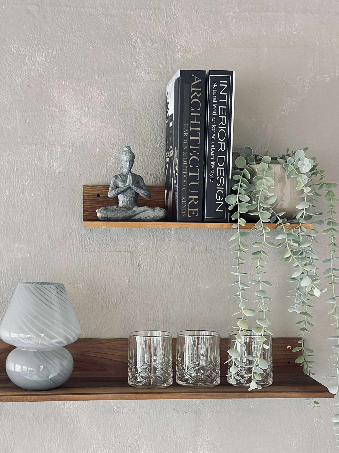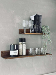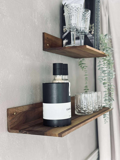Denna hylla, skapad av massiv valnöt, utstrålar en varm och naturlig känsla. Valnötens rika toner och unika ådringar ger varje hylla en individuell karaktär, vilket bidrar till en harmonisk atmosfär i rummet. Den robusta konstruktionen säkerställer hållbarhet och stabilitet, vilket gör att hyllan inte bara är en stilren detalj utan också en pålitlig plats för dina föremål.
