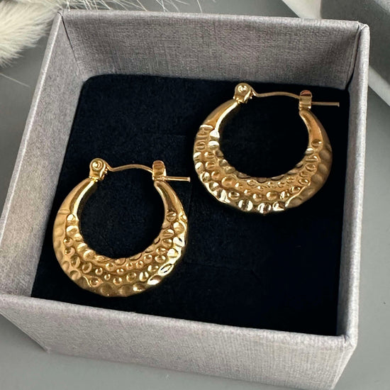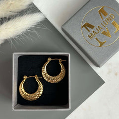 Trött på örhängen som snabbt tappar sin glans? INGVILD örhängen erbjuder hållbarhet och stil utan kompromisser. Förgyllda och tillverkade av rostfritt stål, de förenar enkel skönhet med praktisk funktion, utmärkta för dagligt bruk utan oro för slitage.