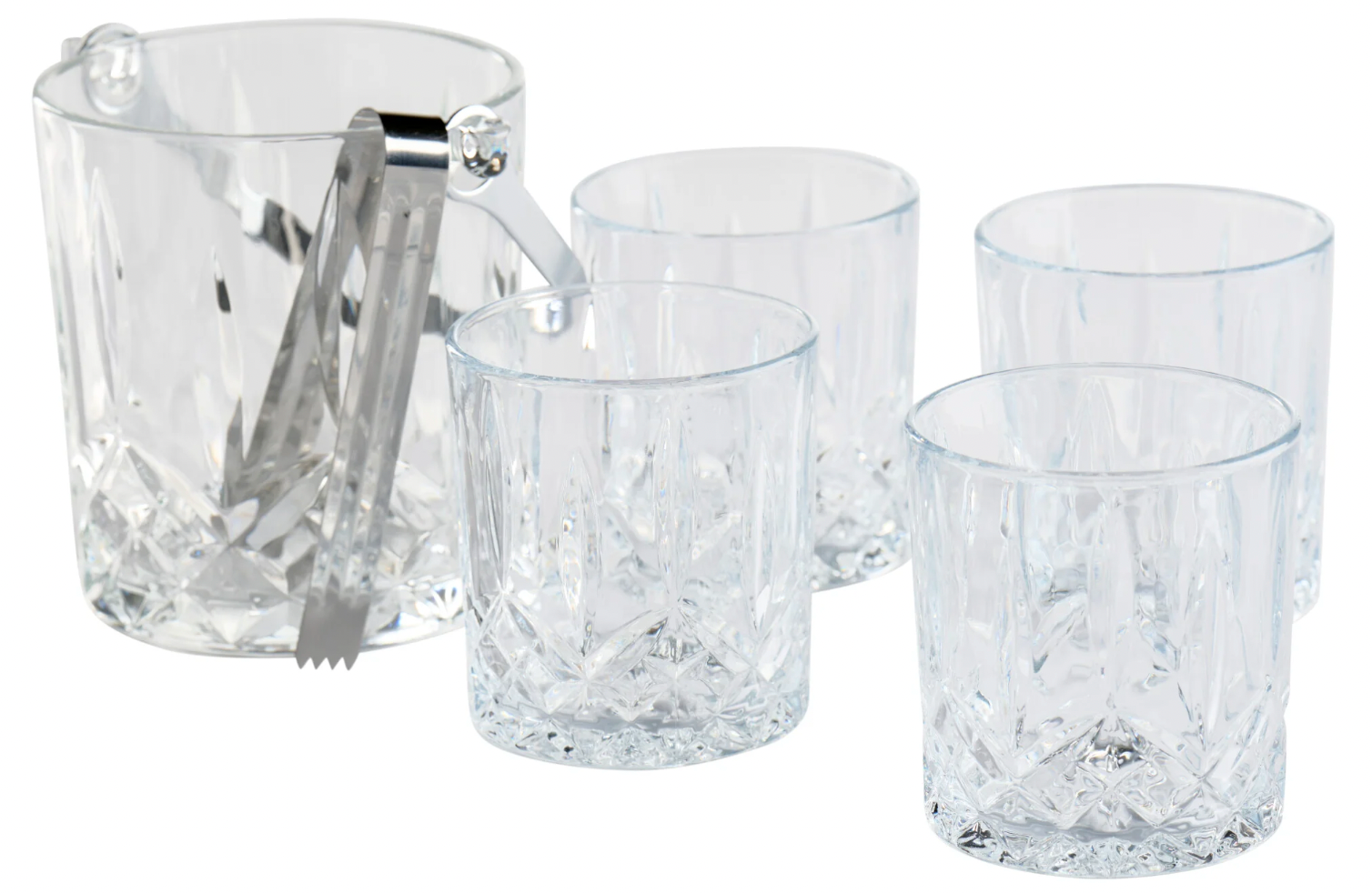 - Ispartysetet innehåller en isspann, en tång och fyra glas