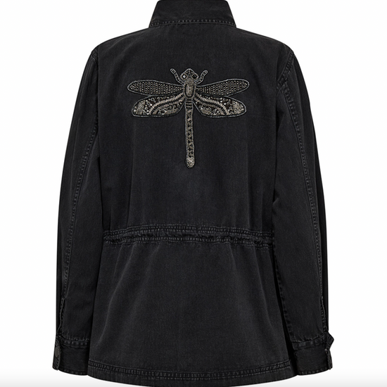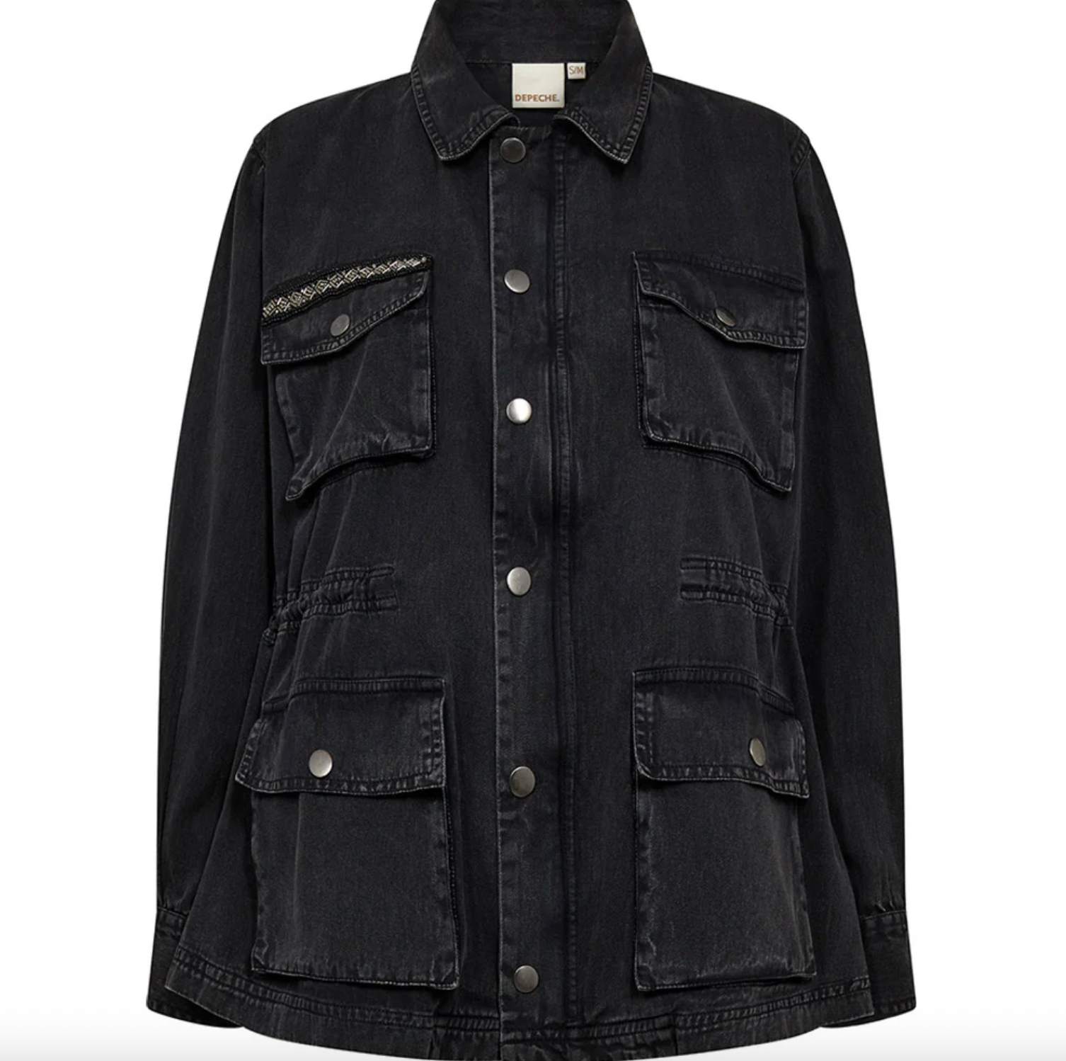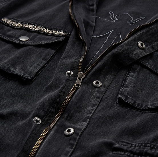 - Jackan har dragkedja och knappar