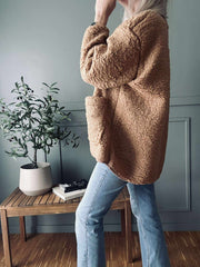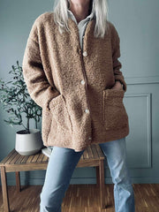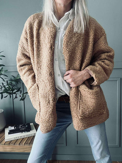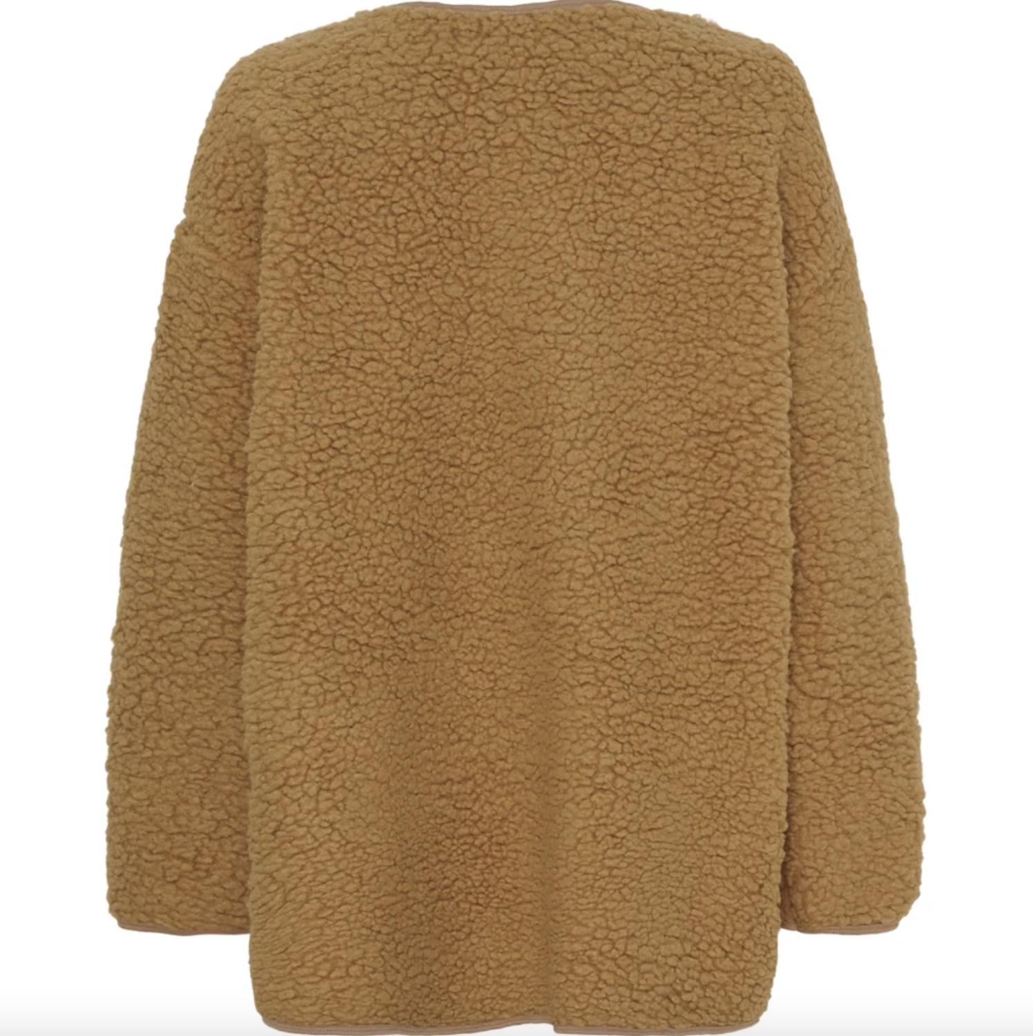Denna teddyjacka i oversize-stil är tillverkad av 100 % polyester, vilket innebär att den erbjuder en lätt och hållbar struktur. Polyester är känt för sin förmåga att bibehålla form och färg, även efter många tvättar. Materialet ger också en mjuk känsla mot huden och bidrar till att behålla värmen, vilket gör jackan till ett praktiskt val för kyligare väder.