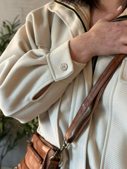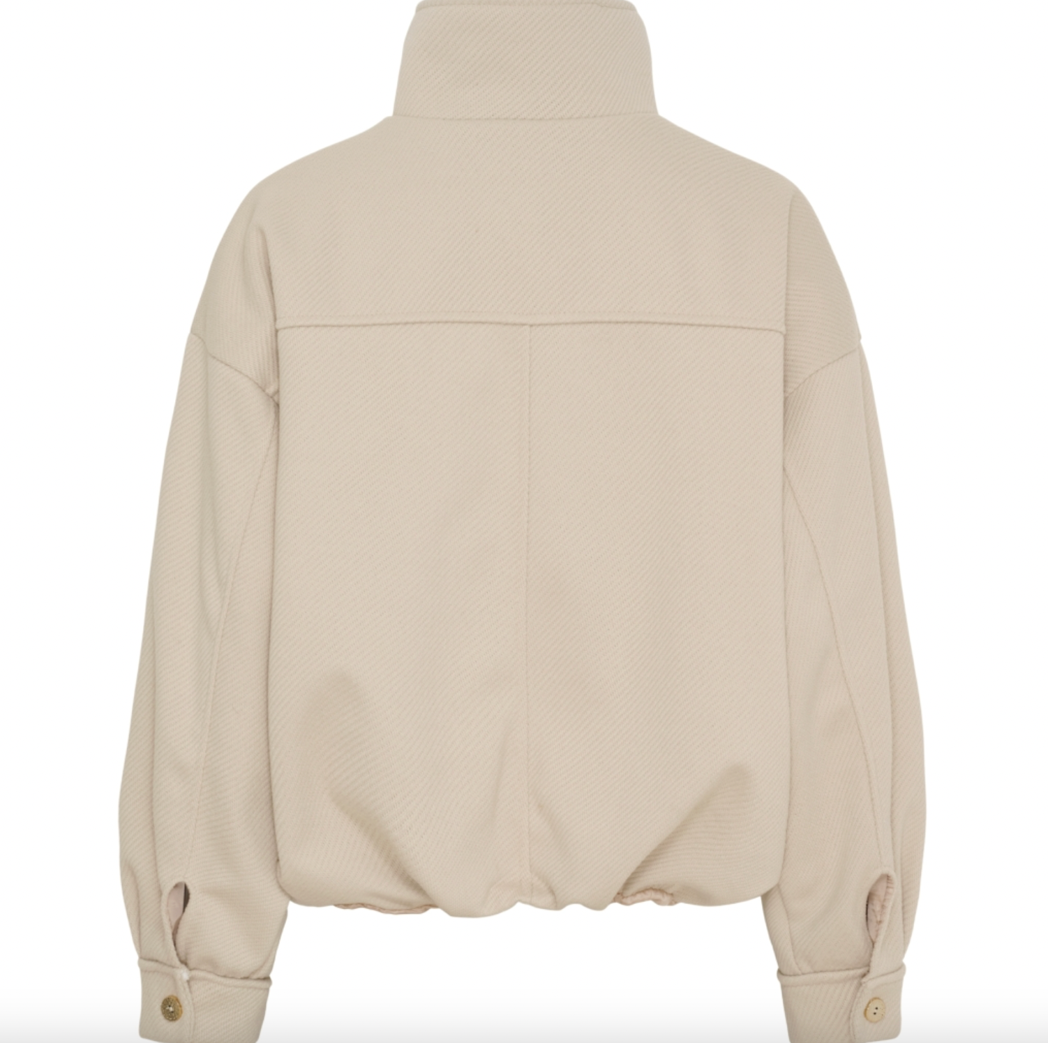 Jacka Lumi - Beige är en cool jacka med ett lugnt, nedtonat uttryck. Den fungerar som ytterplagg i garderoben och kan stylas för flera tillfällen, beroende på vilken look du är ute efter. En enkel jacka som är lätt att matcha både med avslappnade och mer uppklädda outfits.