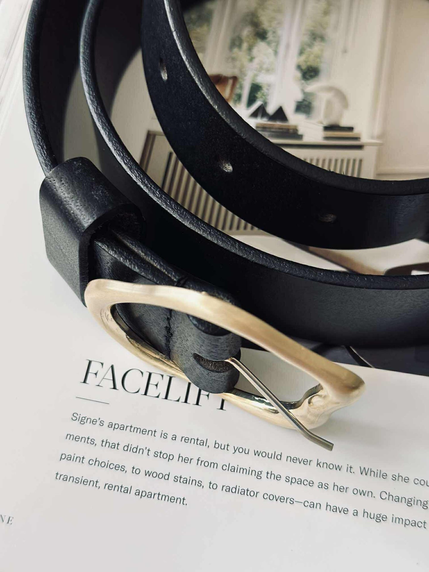 - Skinnbältet är tillverkat av 100 % äkta skinn