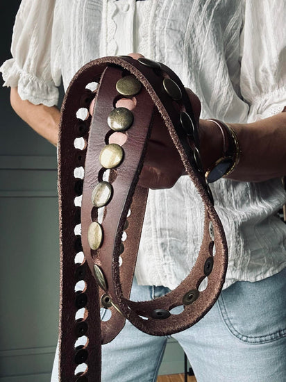 Har du någonsin haft ett bälte som känns tråkigt eller opersonligt? Detta bruna jeansbälte erbjuder en subtil touch av stil och karaktär. Med en tidlös design och material av hög kvalitet får du en funktionell accessoar med en distinkt estetik.