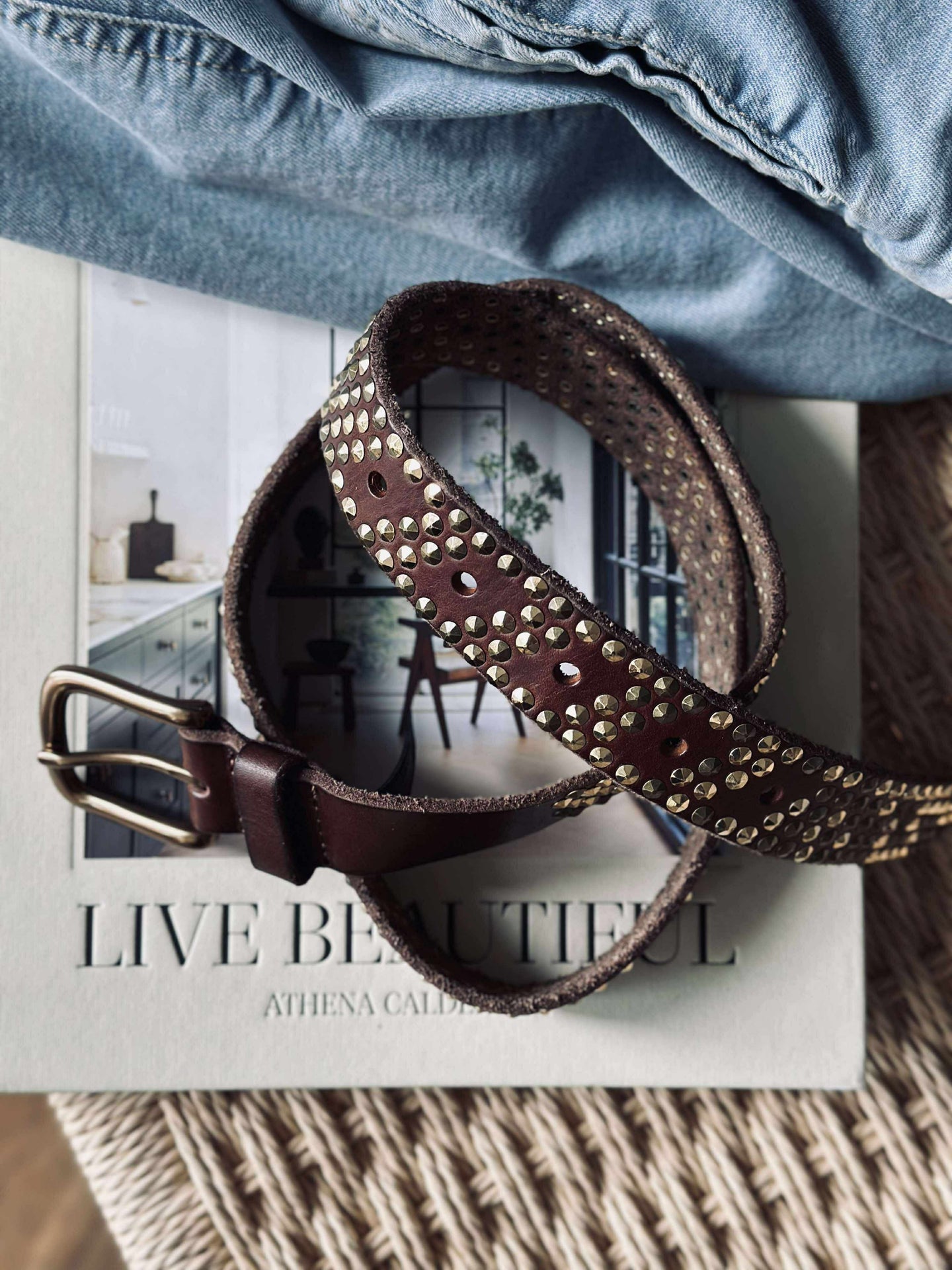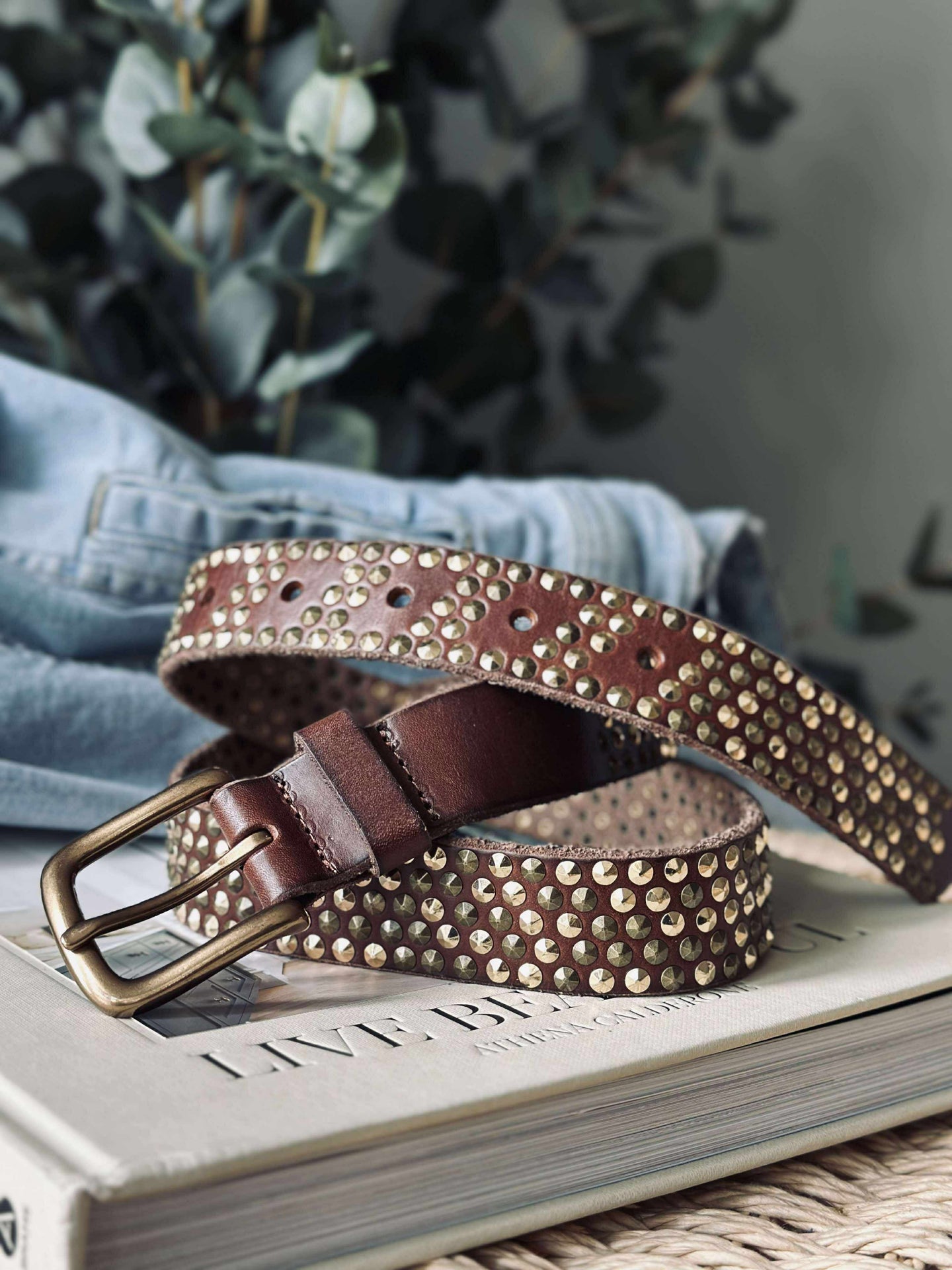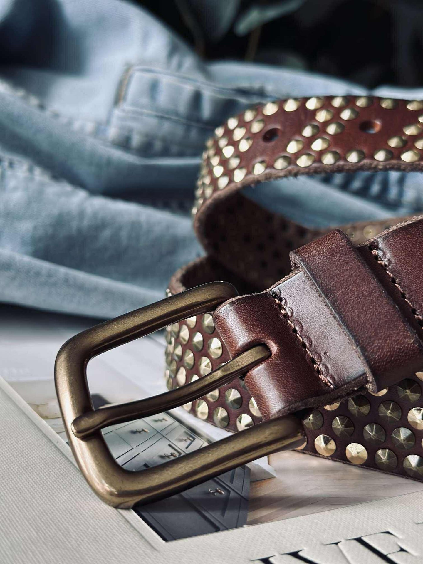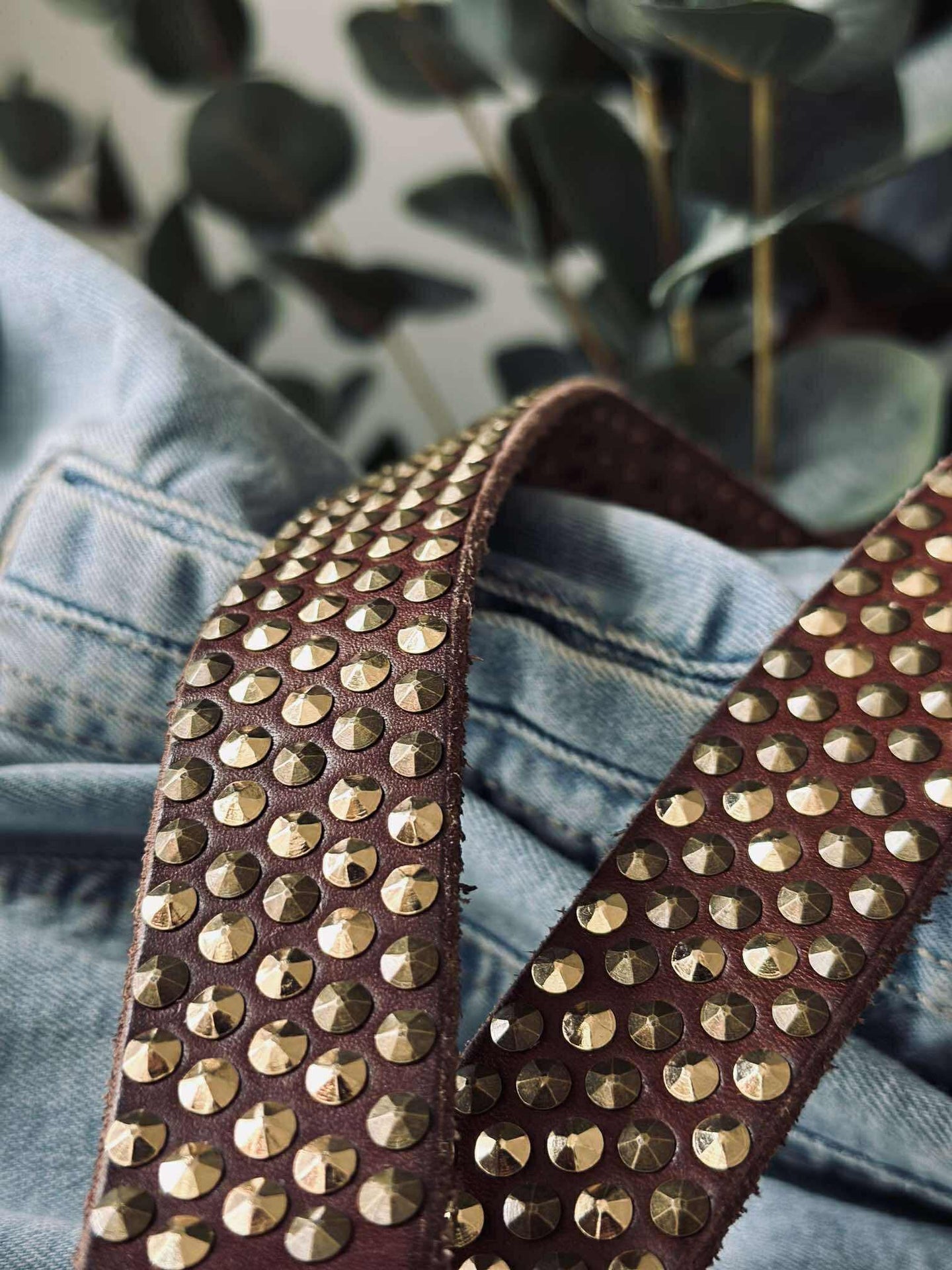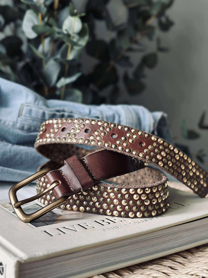 Jeansbälte med nitar - Brun/guld