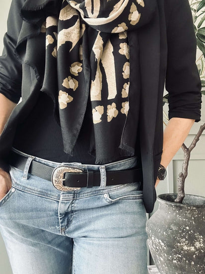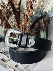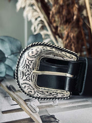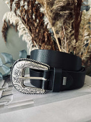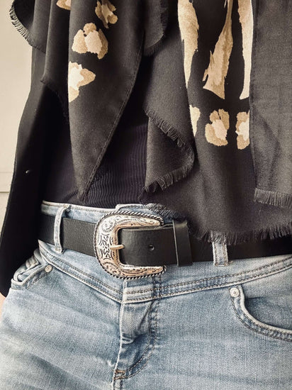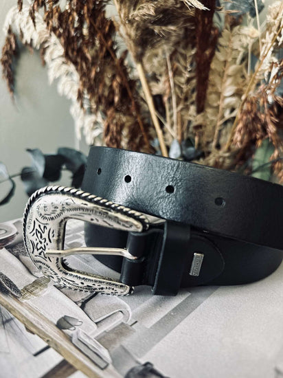 Söker du efter en robust och stilren accessoar till din garderob? Jeansbälte – Svart, tillverkat i läder, erbjuder en tidlös design med en hint av västerninspiration. En perfekt balans mellan funktionalitet och estetik till ett attraktivt pris.