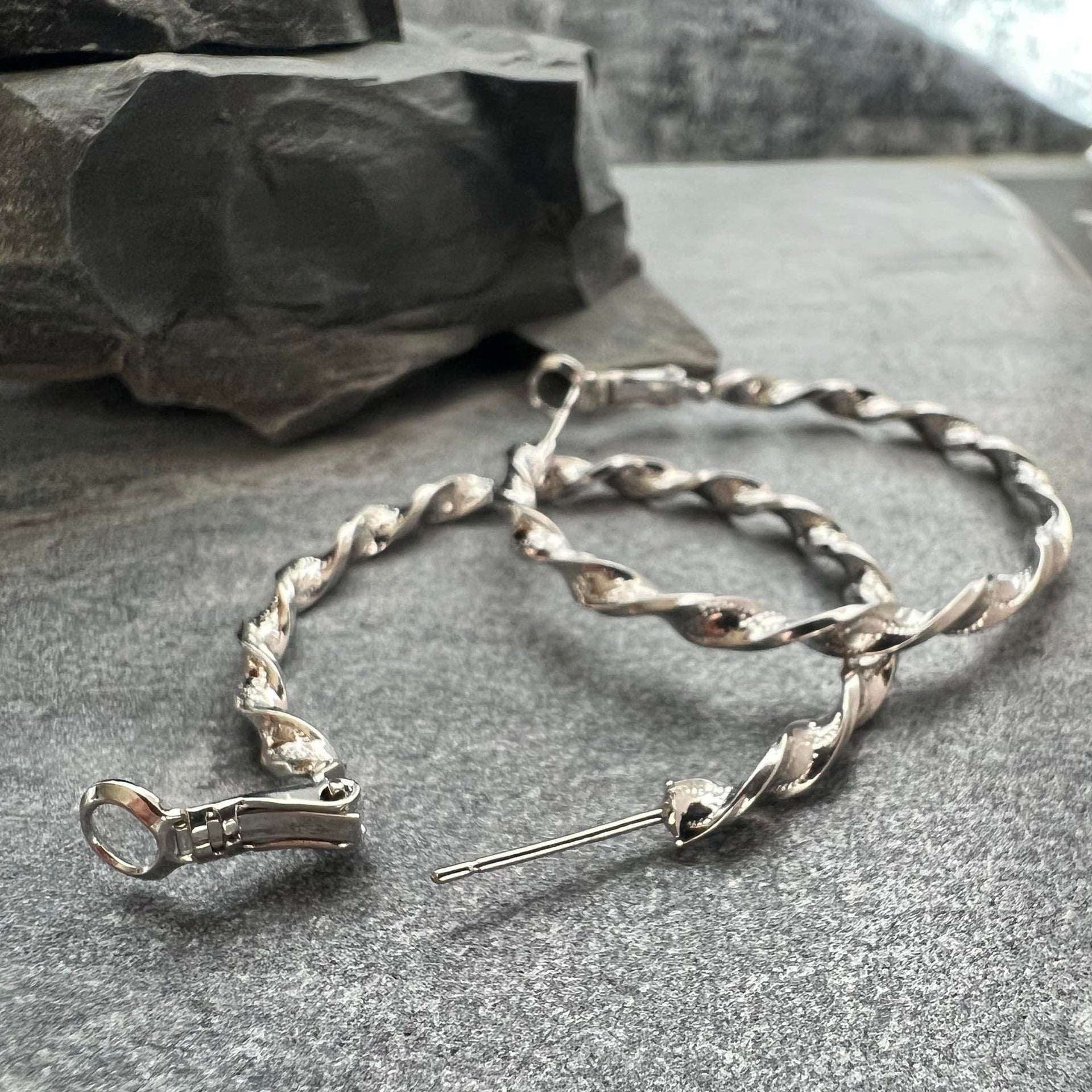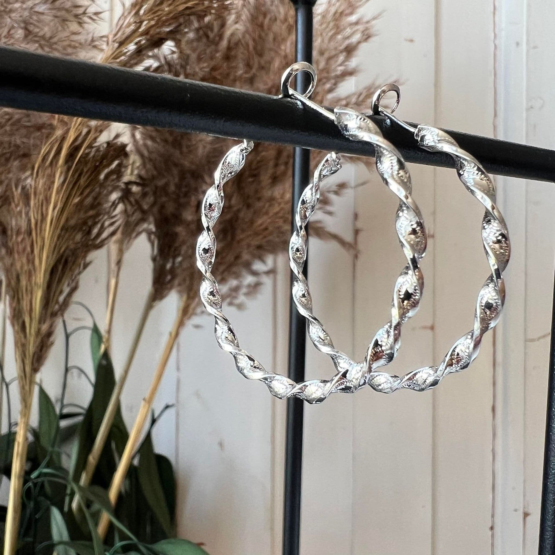 - Klassiska hoop örhängen tillverkade i mässing, förgyllda med stark 18K vitguld-beläggning