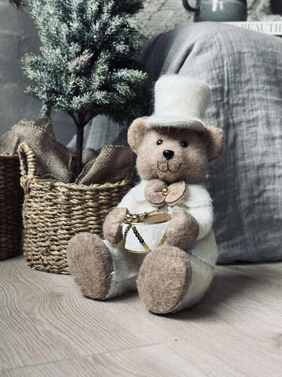 Skapa en mysig och inbjudande atmosfär i ditt hem med Julbjörn - Sittande. Ge ditt rum en touch av värme och charm med detta unika mjukisdjur. Låt dig själv känna den lugnande effekten av en utmärkt dekoration under vintern.
