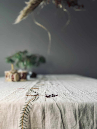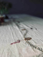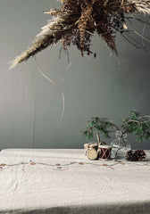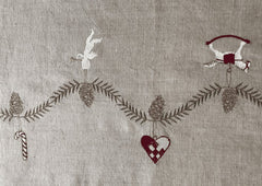 Denna julduk i linne har en vacker design som ger en sofistikerad touch till din juldekoration. Linne är ett hållbart och hållbart material som ger en naturlig och lyxig känsla. Dessutom är linne lätt att sköta, vilket gör det till ett praktiskt val för en julduk. Med denna julduk kan du skapa en varm och välkomnande atmosfär i ditt hem under julen.