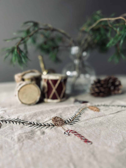 • Vackert designad julduk i linne