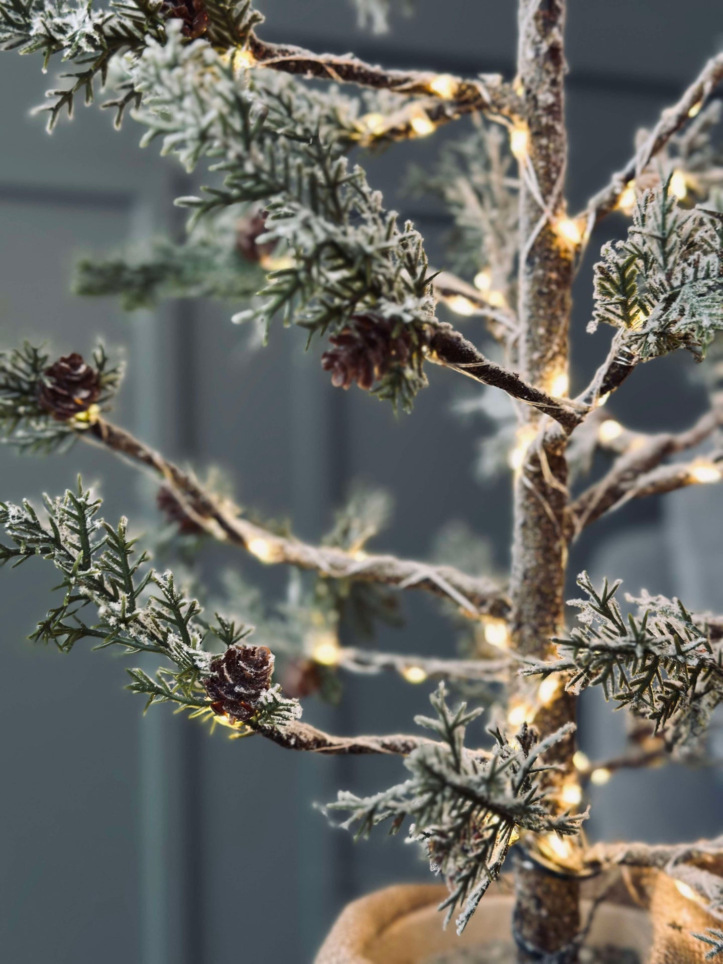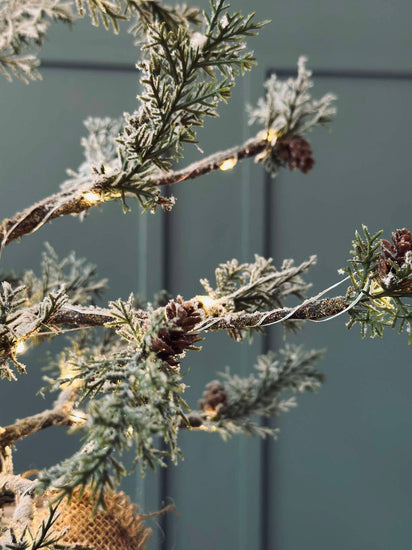 Skapa en stämningsfull julatmosfär utan krångel och besvär med vår julgran med kottar och ljusslinga. Ge ditt hem en touch av julglädje på ett smidigt och enkelt sätt. Upplev julens magi på ett nytt och bekvämt sätt med denna vackra juldekoration.