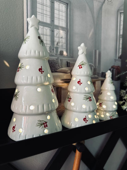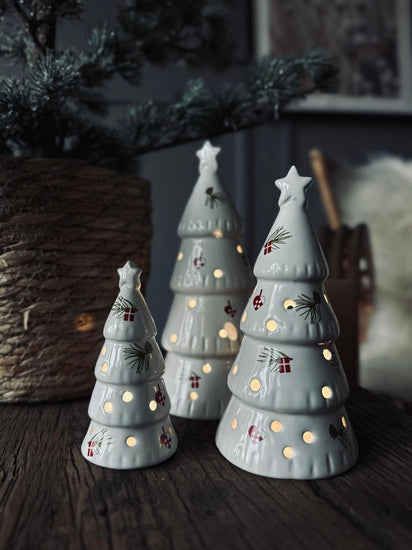 Dessa vita keramik-julgranar med LED-ljus skapar en mysig och inbjudande atmosfär i ditt hem. LED-ljusen avger ett varmt sken som förhöjer julkänslan och kan stanna tända i flera timmar utan att överhettas. Tack vare den släta keramiken är de lätta att rengöra och kan återanvändas år efter år. Dessa julgranar är ett hållbart och säkert alternativ till traditionella julbelysningar.