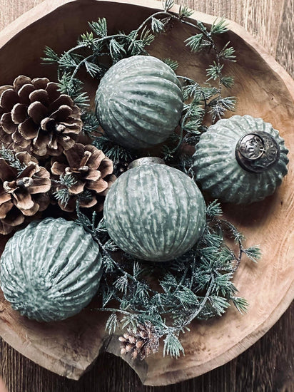 Julgranskulor 4 st Blåst glas - Räfflad grön dia 7,5cm