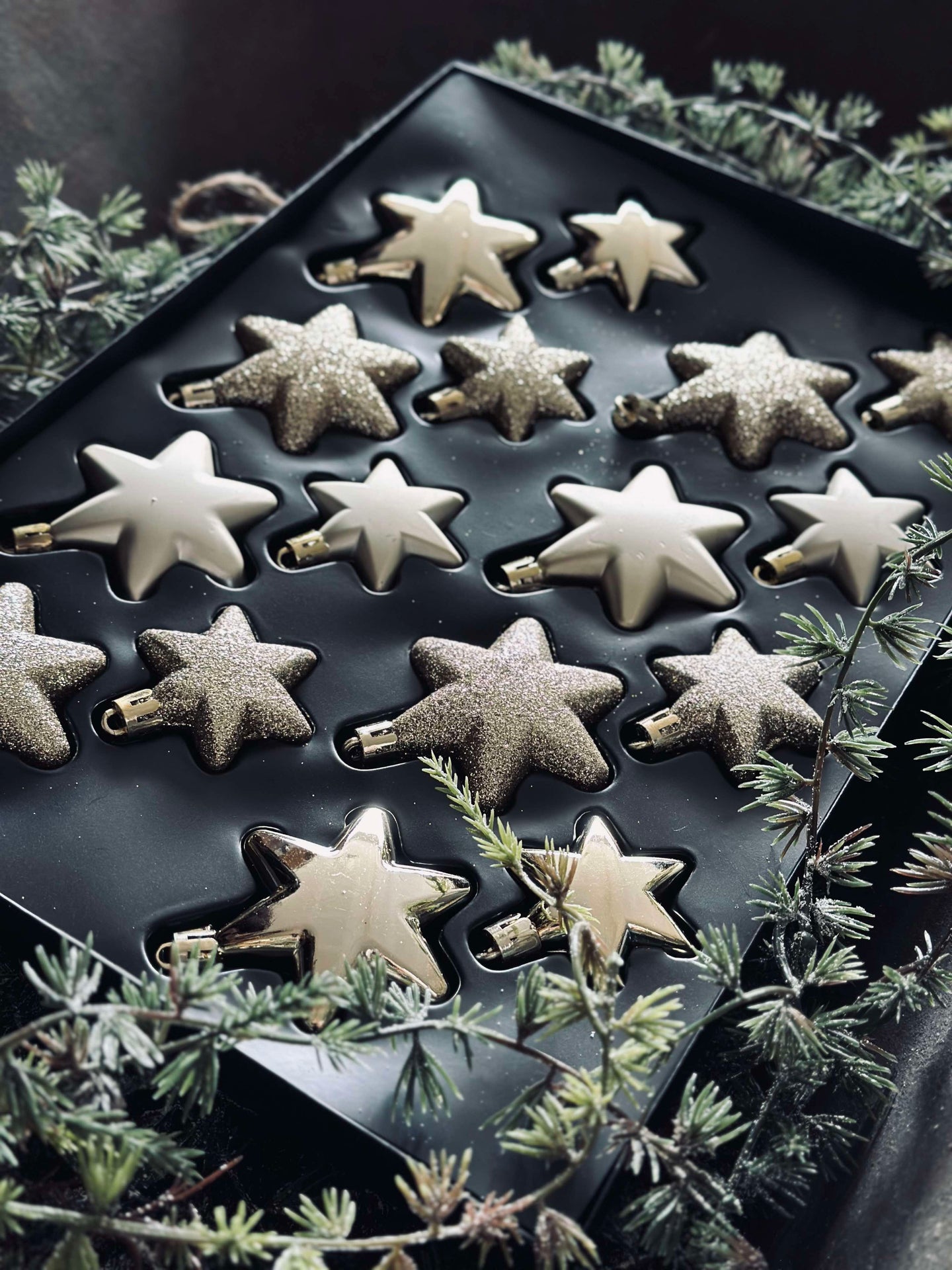 Ge din gran det den förtjänar med våra hållbara julgranskulor. Slipp spruckna dekorationer och njut av en sofistikerad och lyxig look i ditt hem. Skapa en fridfull och vacker julstämning med våra stilrena kulor med stjärnor.