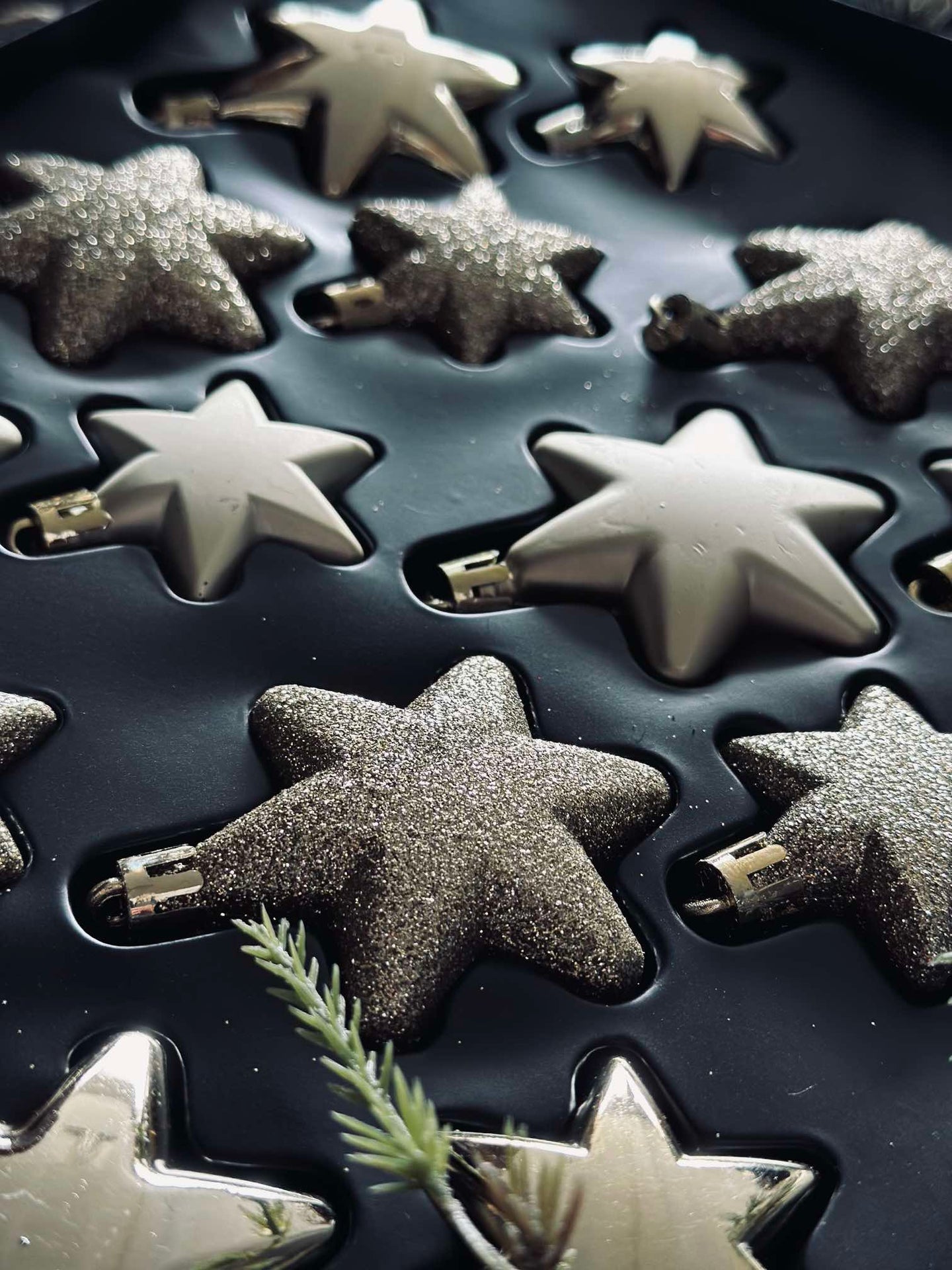 Trött på spruckna julgranskulor? Dessa hållbara och stilrena kulor med stjärnor ger din gran en sofistikerad glans utan extra vikt. Utmärkta för den som vill ha ett enhetligt och lyxigt utseende utan att oroa sig för ömtåliga dekorationer.