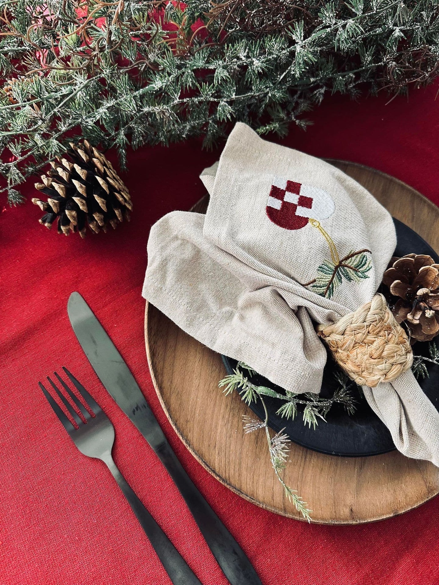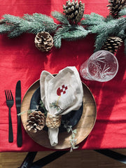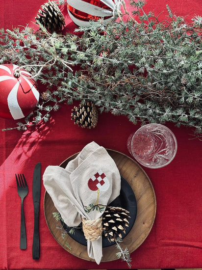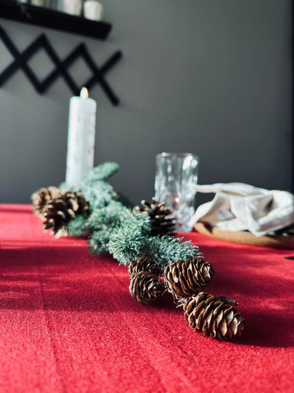 Skapa en mysig och stämningsfull julatmosfär i ditt hem med vår julduk i bomull. Låt ditt hem bli hjärtat av festligheter och hållbarhet denna säsong. Ge din julmiddag den perfekta touchen med vår vackra röda duk.