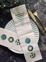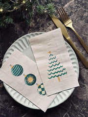 Föreställ dig en middag där varje detalj är genomtänkt, från dekoration till dukning. Med våra julservetter i petrol och sand skapar du en atmosfär av sofistikerad enkelhet. Låt dessa servetter bli en del av din tradition, där funktion möter stil på bästa sätt.