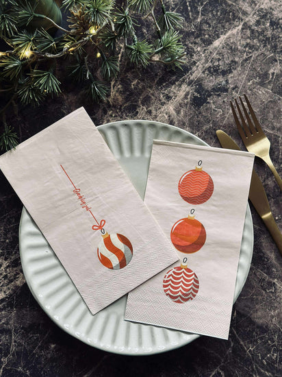 När julfirandet närmar sig och du vill undvika stressen med disk, erbjuder dessa servetter en praktisk och stilren lösning. Den röda och sandfärgade designen ger en varm känsla, vilket kan förhöja stämningen vid din juldukning.