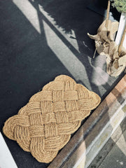- Dörrmattan är tillverkad av flätad jute