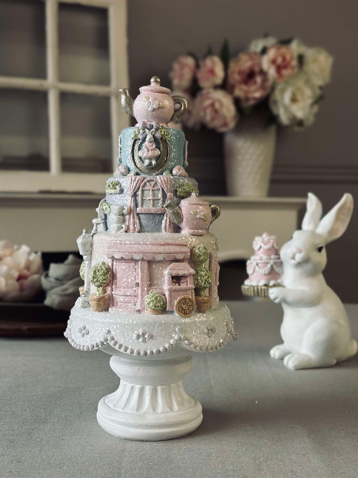 Letar du efter en charmig detalj för att förhöja din bordsdukning vid speciella tillfällen? Denna kaka med tekopp är ett subtilt inslag som ger din fest dekorativ stil och skapar en inbjudande atmosfär utan att överdriva.