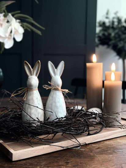 Keramikkaninen är tillverkad av högkvalitativ keramik, vilket ger den hållbarhet och tålighet som gör den lämplig för både inomhus- och utomhusbruk. Den fina ytan och den robusta konstruktionen säkerställer att den behåller sin skönhet över tid. Dessutom bidrar keramikens naturliga egenskaper till en tidlös och stilren framtoning, vilket kompletterar många inredningsstilar.