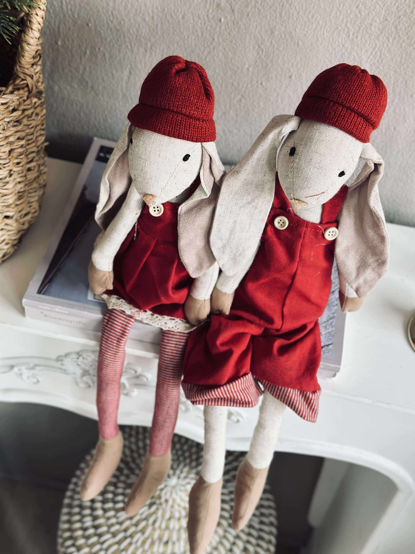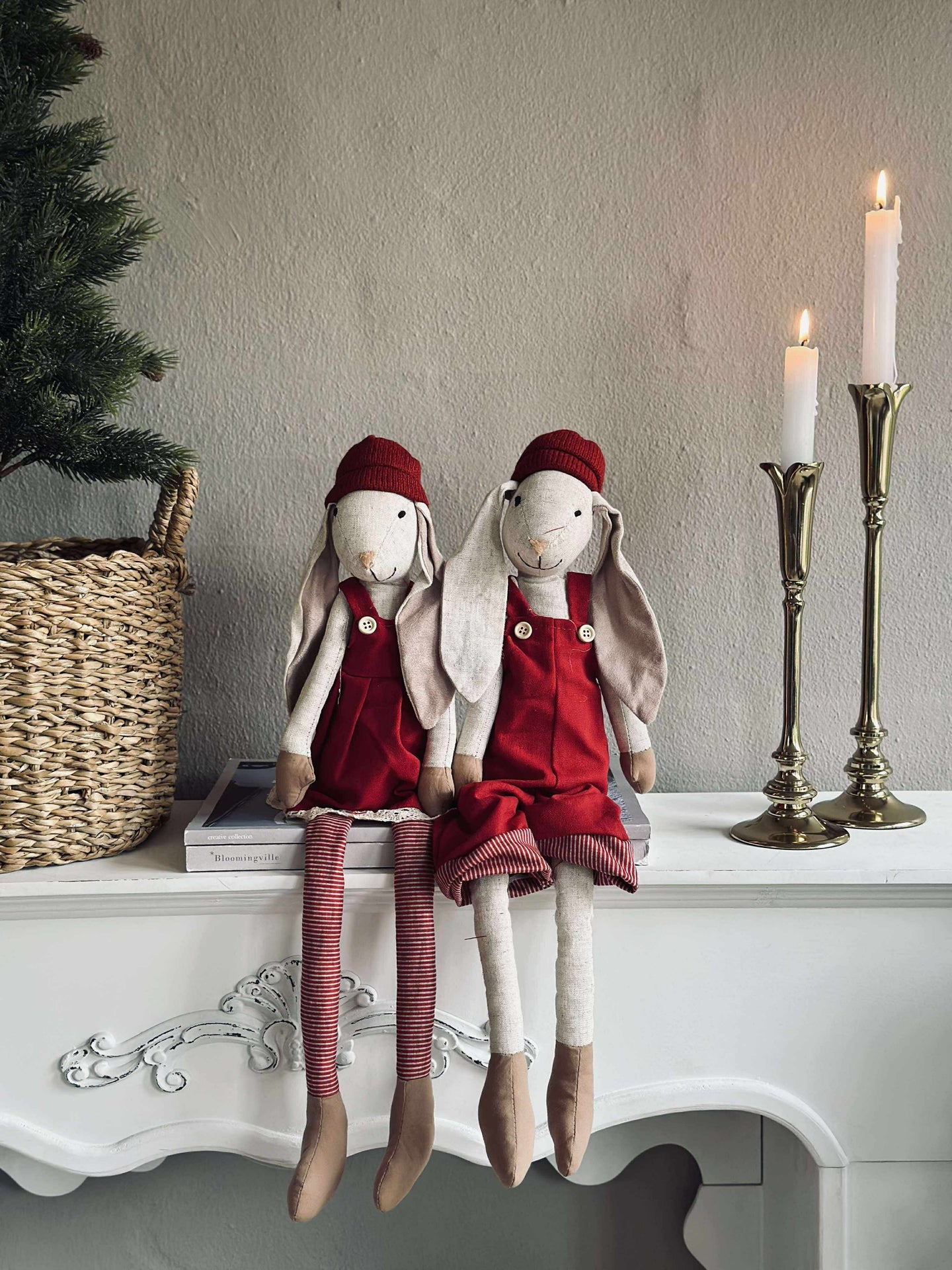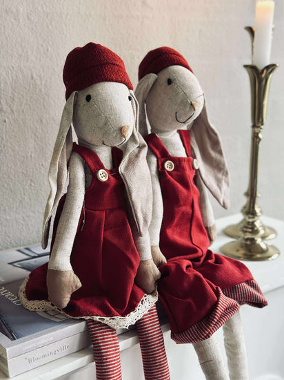 Kaninmusen säljs assorterad och levereras slumpmässigt utvald i röd klänning eller röd spencer. Du får 1 st.