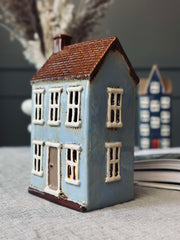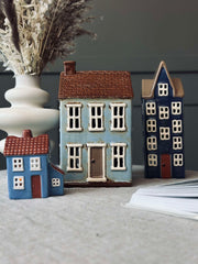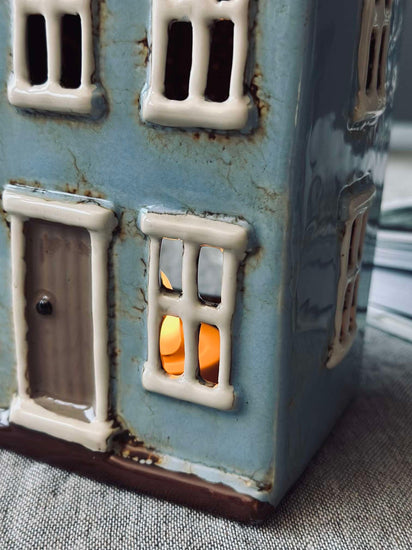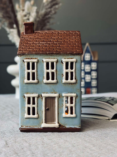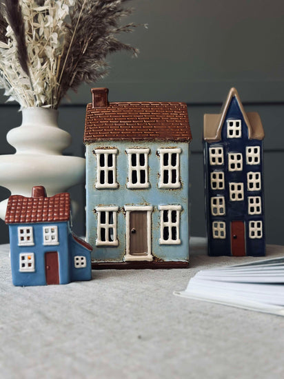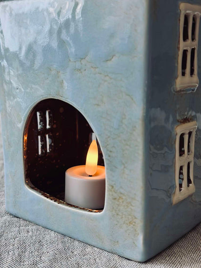 Skapa en lugn och harmonisk atmosfär i ditt hem idag med Keramikhus - Dammig blå. Låt ljuset sprida värme och skapa en avslappnad stämning i ditt personliga utrymme. Ge ditt rum det lilla extra med denna stilrena ljuslykta i keramik.
