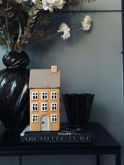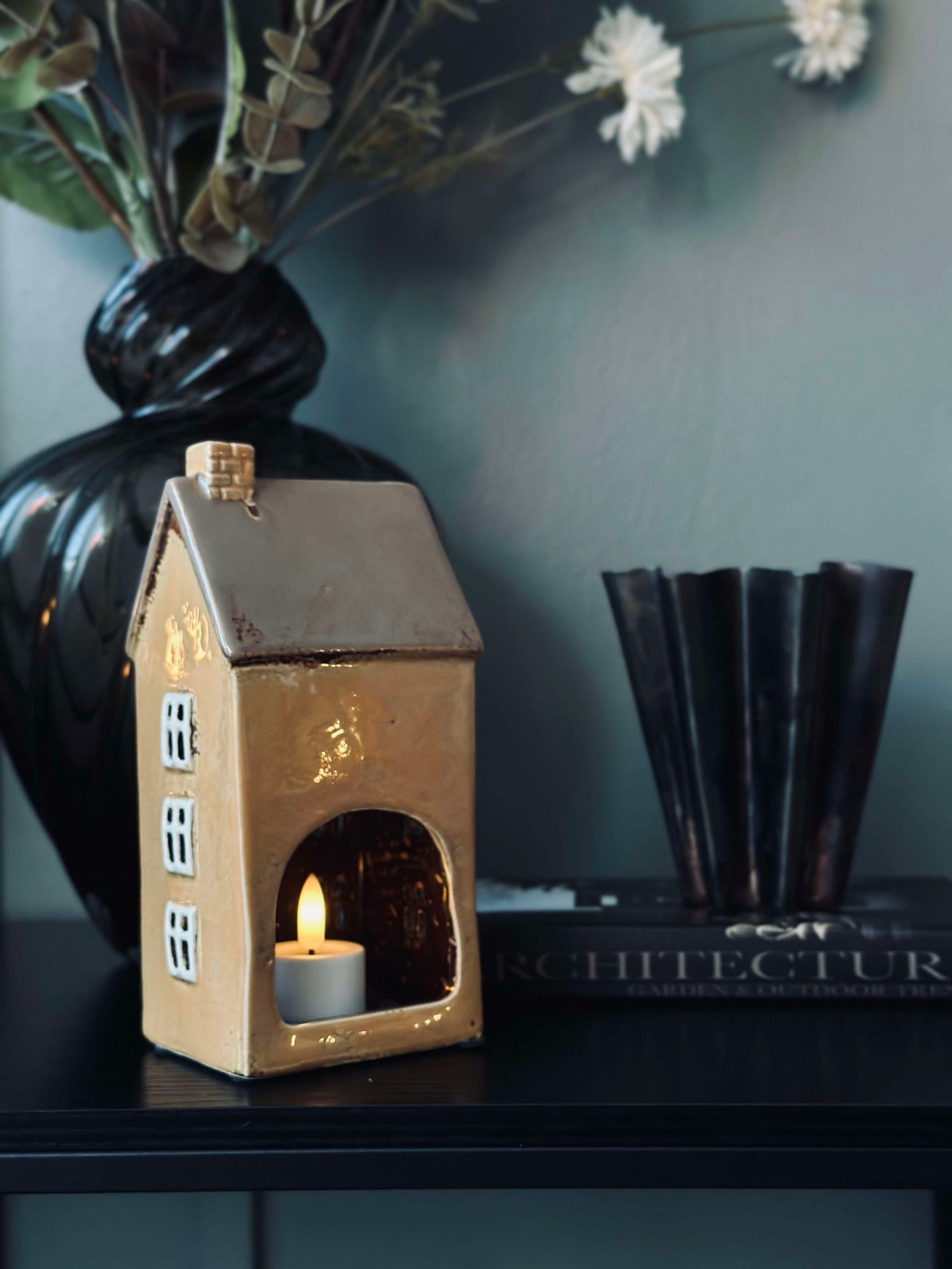 Skapa en fridfull atmosfär i ditt hem med Keramikhus för Ljus - Gul. Låt ljuset sprida värme och lugn i ditt rum, utmärkt för avkoppling efter en lång dag. Ge dig själv den gåvan av harmoni och skönhet i vardagen.