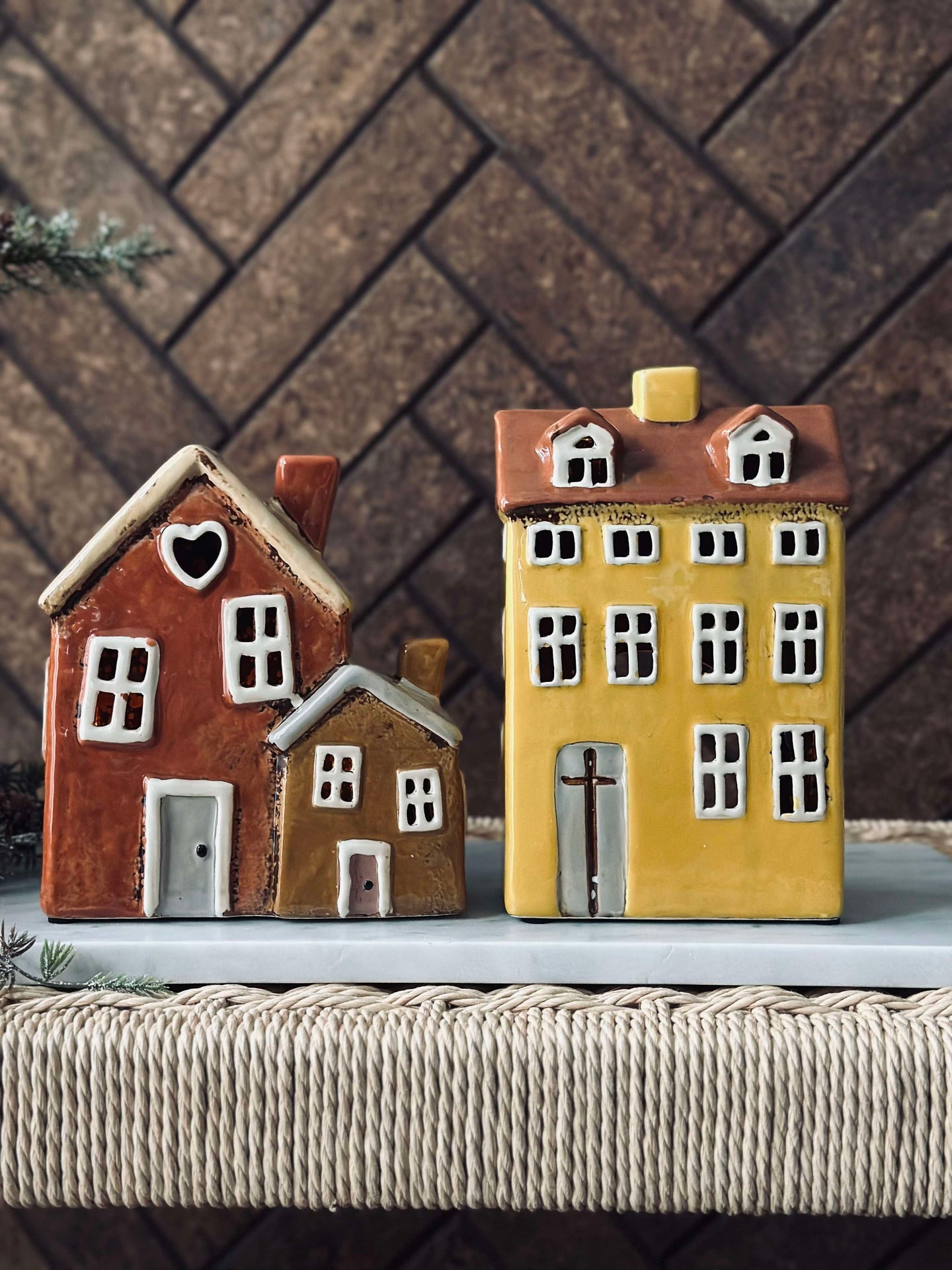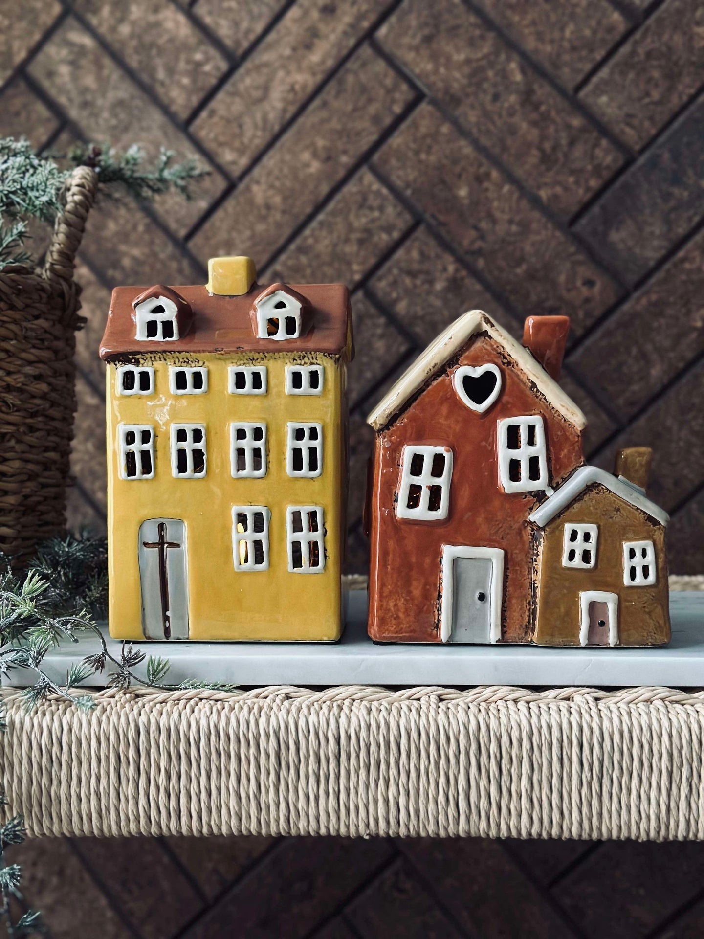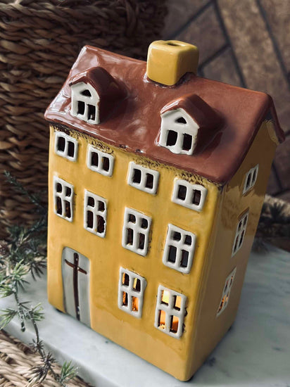 Skapa en lugn och mysig atmosfär i ditt hem med Keramikhus - Gul ljuslykta. Låt det dämpade ljuset sprida värme och skapa en avslappnad stämning. Ge ditt rum en subtil touch av stil och njut av en avkopplande kväll.