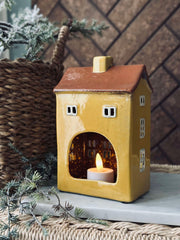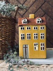 Föreställ dig en mysig kväll där du vill skapa en varm atmosfär. Keramikhus - Gul bidrar med en behaglig stämning genom att sprida ett dämpat ljus. Den diskreta färgen ger en subtil men stilfull touch till ditt hem.