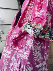 Unna dig känslan av lyx i vardagen med denna rosa kimono. Idealisk för hemmabruk, erbjuder den en avslappnad komfort och en touch av feminin charm. En mångsidig tillägg till din garderob, passar den alla kroppsformer.