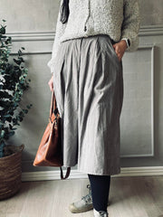 Midikjolen, tillverkad av 100 % bomull, erbjuder en mjuk och behaglig känsla mot huden, vilket gör den idealisk för dagligt bruk. Bomullens naturliga andningsförmåga bidrar till att hålla dig sval och bekväm, även under varmare dagar. Materialet är dessutom lätt att sköta, vilket underlättar tvätt och underhåll utan att kompromissa med stil eller komfort.