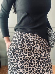 Leopardkjolen är tillverkad av 100 % bomull, vilket gör den både mjuk och bekväm att bära. Bomullsmaterialet låter huden andas, vilket bidrar till en behaglig känsla under hela dagen. Dessutom är bomull ett slitstarkt material som håller länge, vilket ger kjolen en längre livslängd. Den naturliga fibern är också lätt att underhålla, vilket förenklar vardagen.