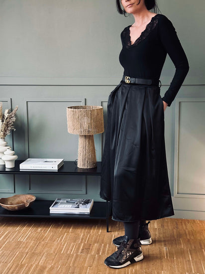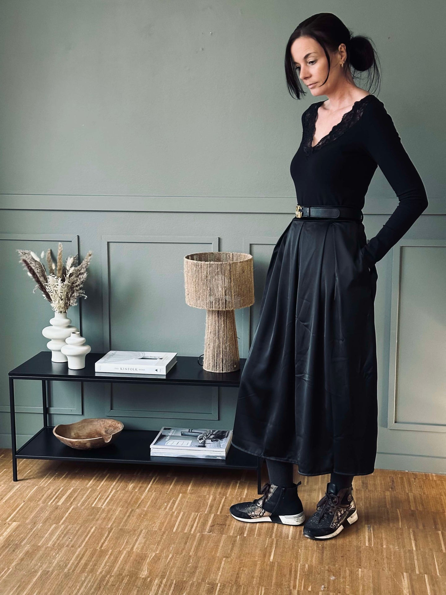 När du söker en kjol som kombinerar stil och komfort i vardagen kan Kjol Leonora i svart vara lösningen. Den erbjuder en praktisk och modern stil för olika tillfällen, med en design som anpassar sig efter din kropp.