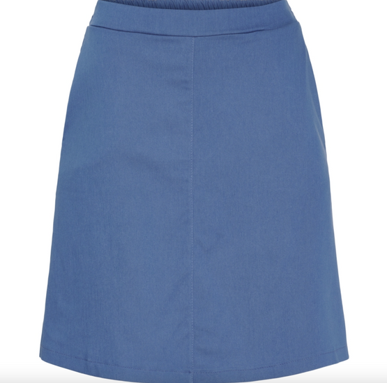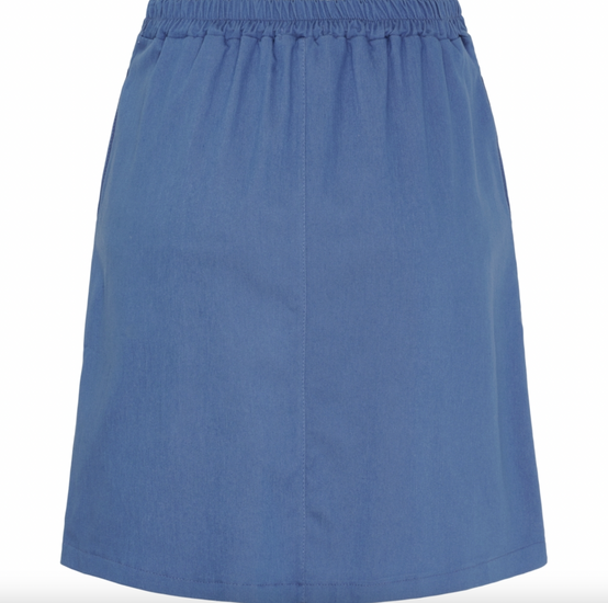 Kjol Sidsel - Denim i mörkblå är en kort kjol med ett nedtonat, denim-inspirerat uttryck. Den enfärgade designen gör den lätt att styla, medan dess normala passform ger ett rent och enkelt utseende.