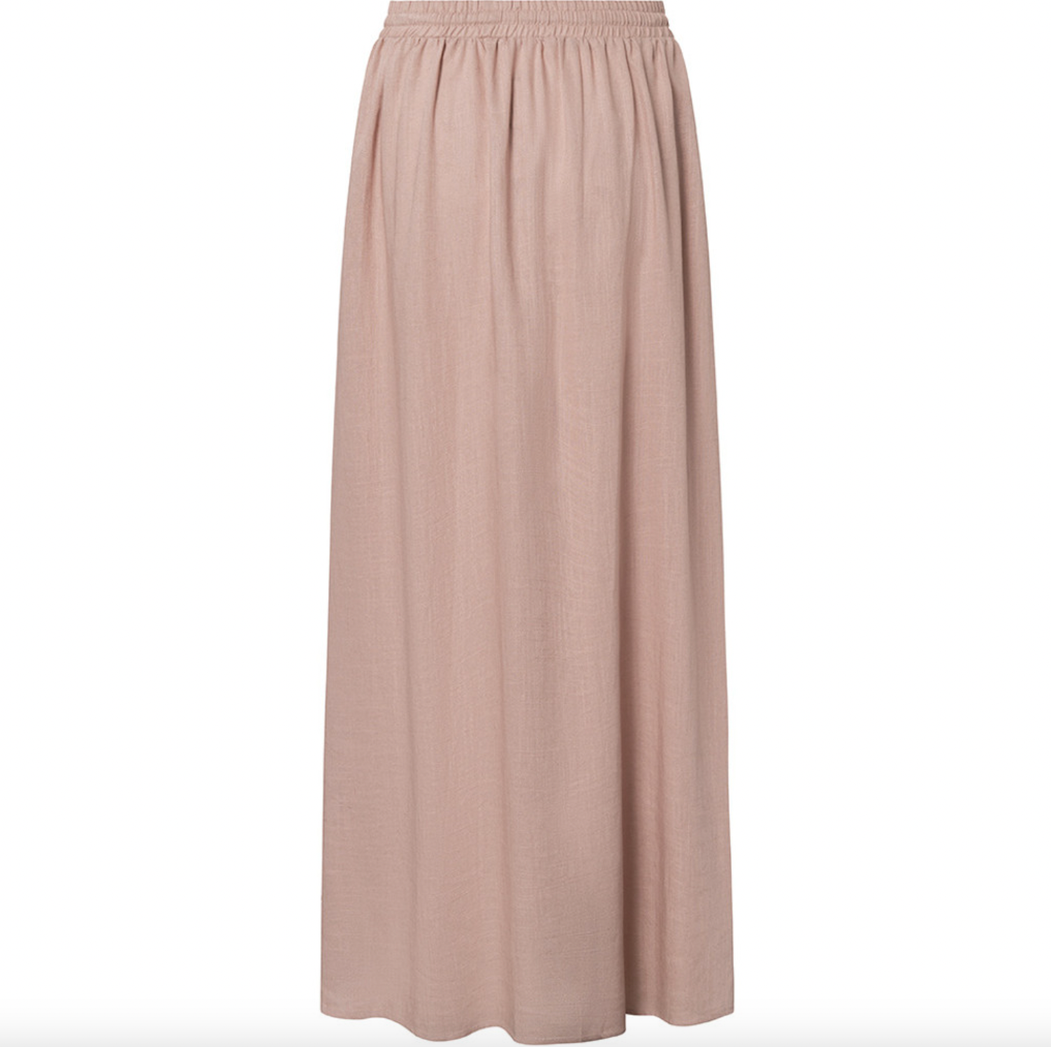 Denna kjol är tillverkad av en blandning bestående av 70 % viskos och 30 % äkta linne. Kombinationen ger ett tyg som andas och känns mjukt mot huden, vilket gör det idealiskt för både varma och svalare dagar. Viskosens följsamhet och linnets naturliga struktur ger kjolen en behaglig passform och ett stilfullt fall, samtidigt som den är lätt att underhålla.