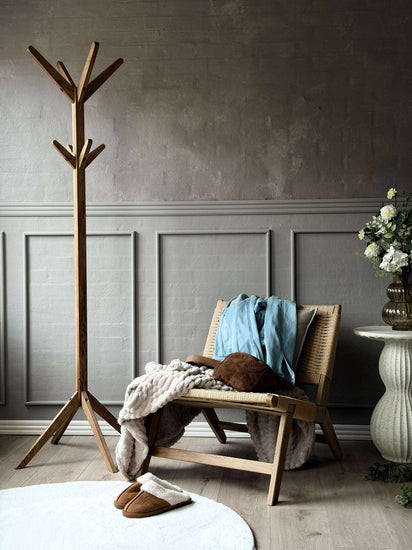 Denna stumtjener erbjuder en kombination av hållbarhet och tidlös estetik genom sin konstruktion i massiv äkta ek. Materialvalet ger möbeln en robust känsla, samtidigt som det naturliga träet bidrar till en varm och inbjudande atmosfär i hallen. Eken åldras vackert över tid, vilket gör att stumtjenern behåller sin charm och funktionalitet under många år.
