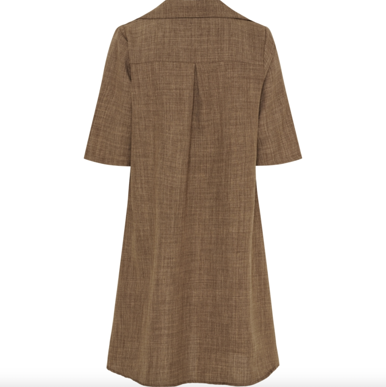 Klänning Bernice Brown är en mångsidig klänning som fungerar både i vardagen och till fest. Den kommer i en brun nyans med ett struktur/vävt mönster som ger ett livfullt uttryck utan att bli för mycket. Med sin regular passform är den lätt att styla åt olika håll, beroende på vilken look du vill ha.