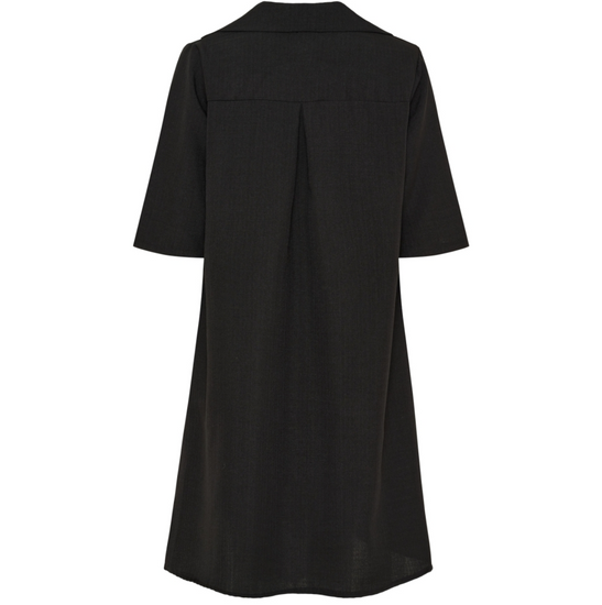 Klänning Bernice Black är en enfärgad svart klänning i polyester med regular passform. Det enkla uttrycket gör den lätt att styla i olika riktningar, beroende på vilken look du vill ha.