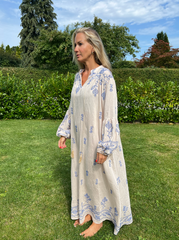 Känner du att det är svårt att hitta en klänning som både ger komfort och stil? 'Klänning Boheme - Beige / blå' erbjuder en lösning med sin avslappnade passform och material som känns bra mot huden, idealisk för många tillfällen.